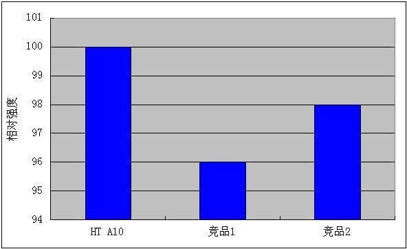 使用競品1和2制備的酞菁藍色漿4 星期后出現(xiàn)沉淀,而HT A10制備的色漿4 星期后仍沒有沉淀。HT A10制備的色漿冷熱循環(huán)后的粒徑變化為5 nm,競品1和2制備的色漿粒徑變化分別為11 nm和9 nm。色漿熱存放實驗和冷熱循環(huán)實驗證明HT A10對酞菁藍穩(wěn)定作用優(yōu)于競品1和2。